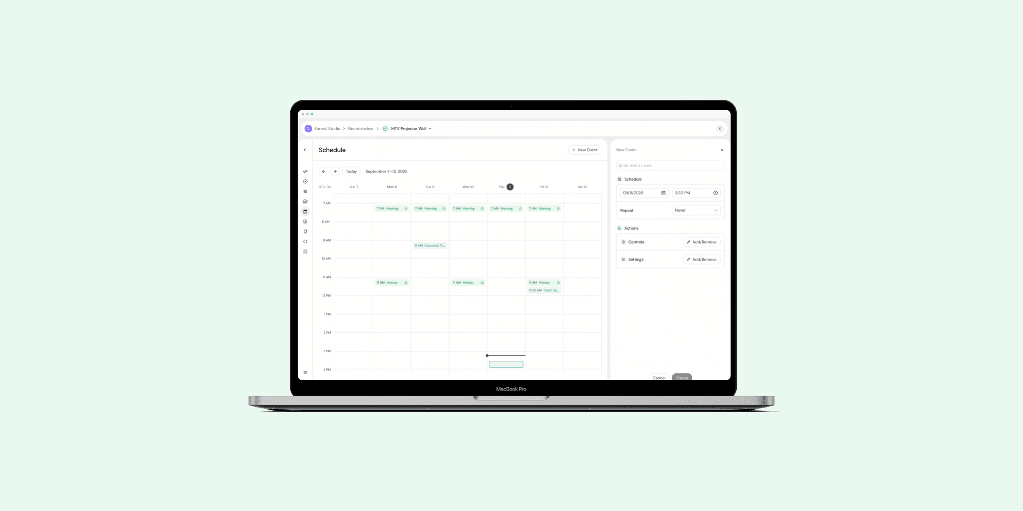 Interactive calendar to see reoccurring and custom scheduled events for tech-integrated Exhibits.