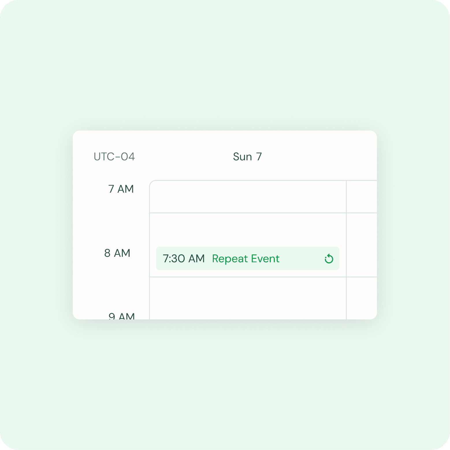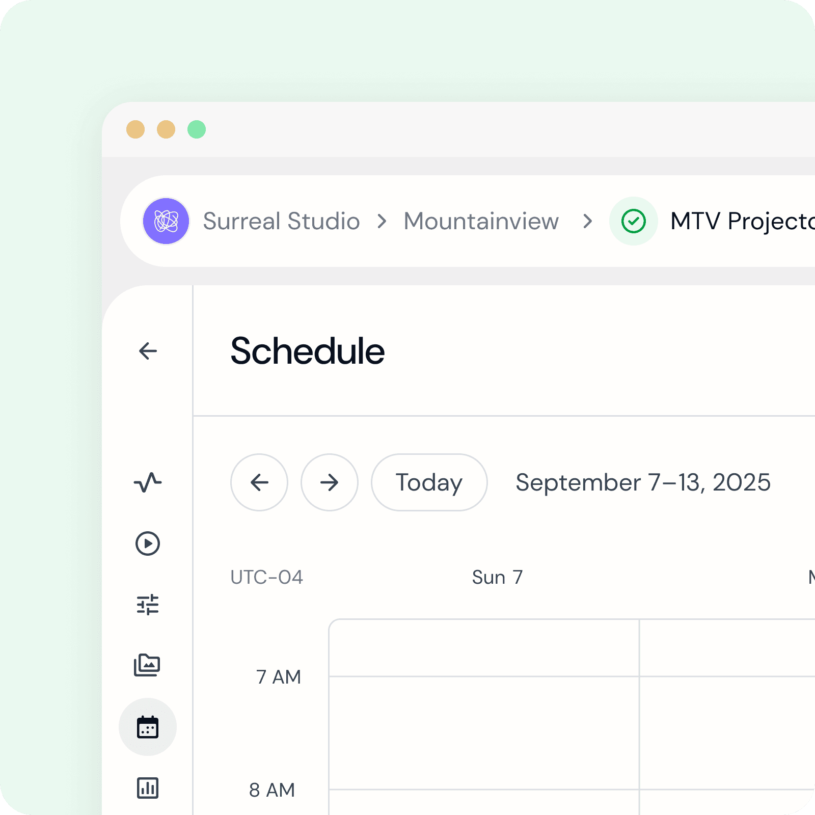 Calendar - Y Axis with time zone and time by the hour. By default, the time should start with 7 am with ability to scroll up to see times 12am-6am and scroll down to see the remaining times until 12am.