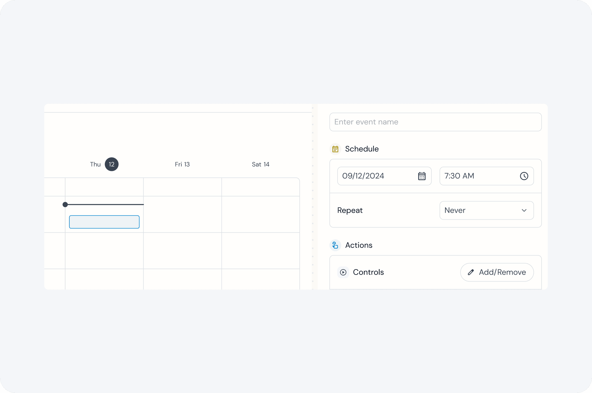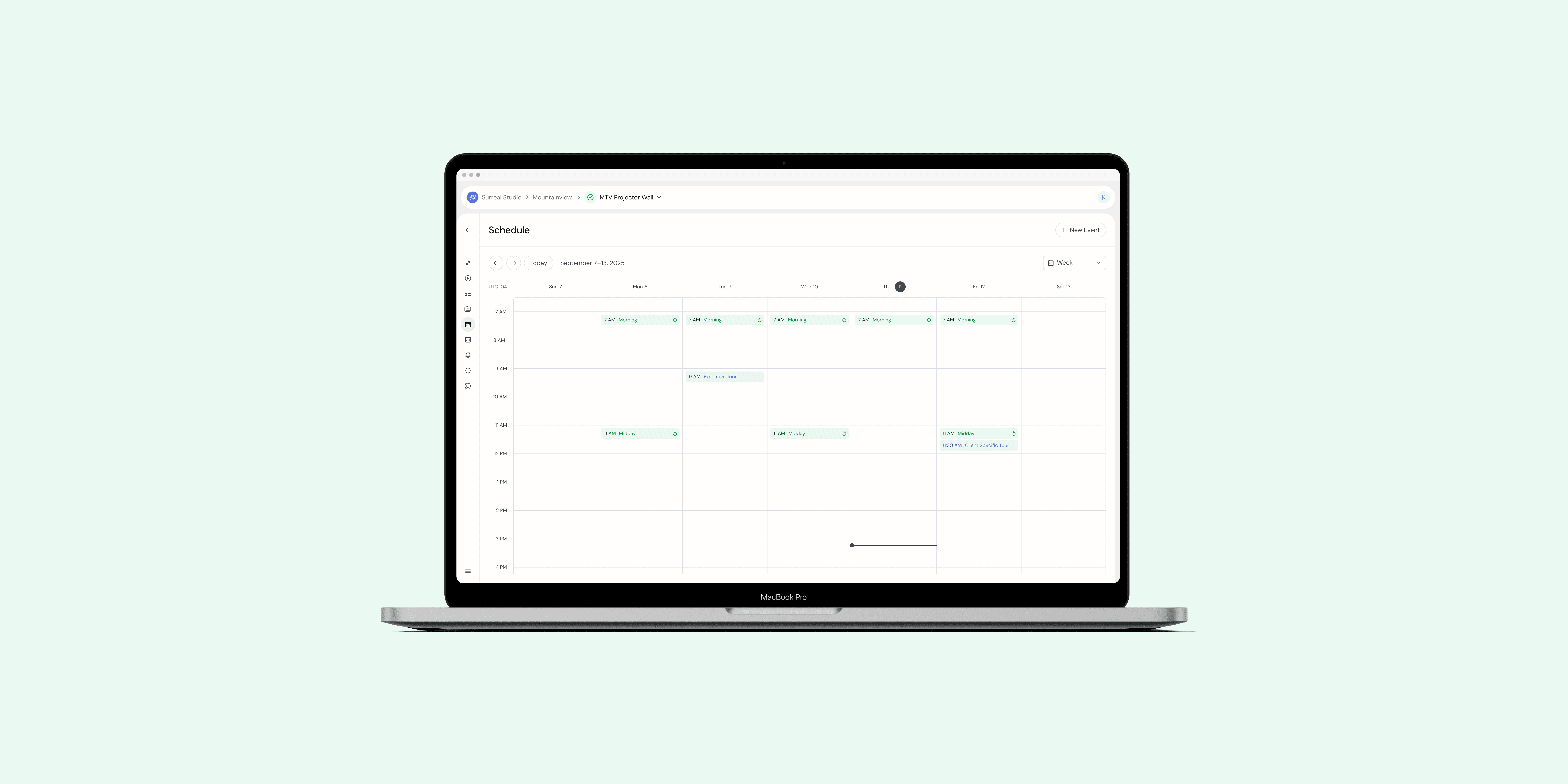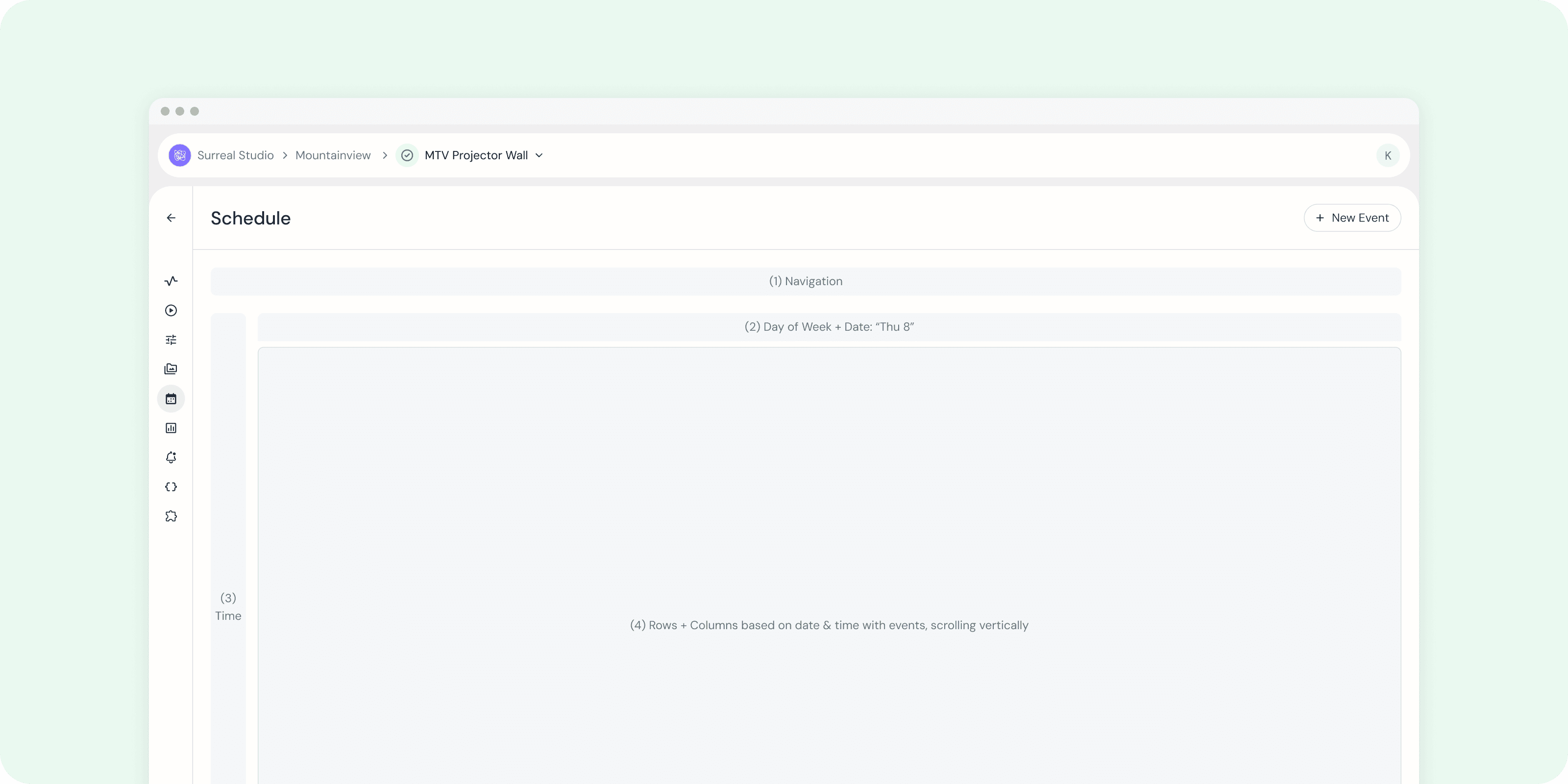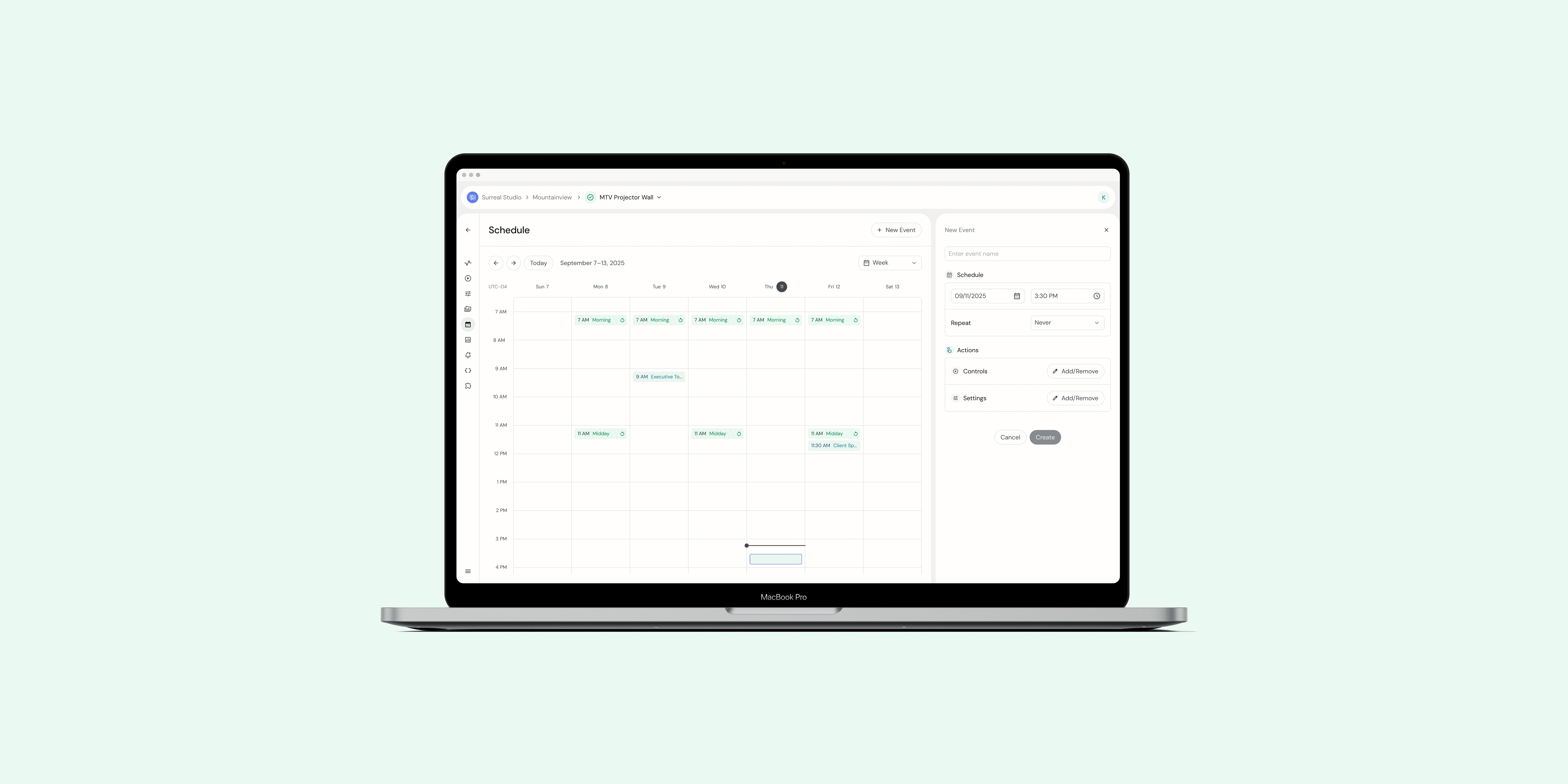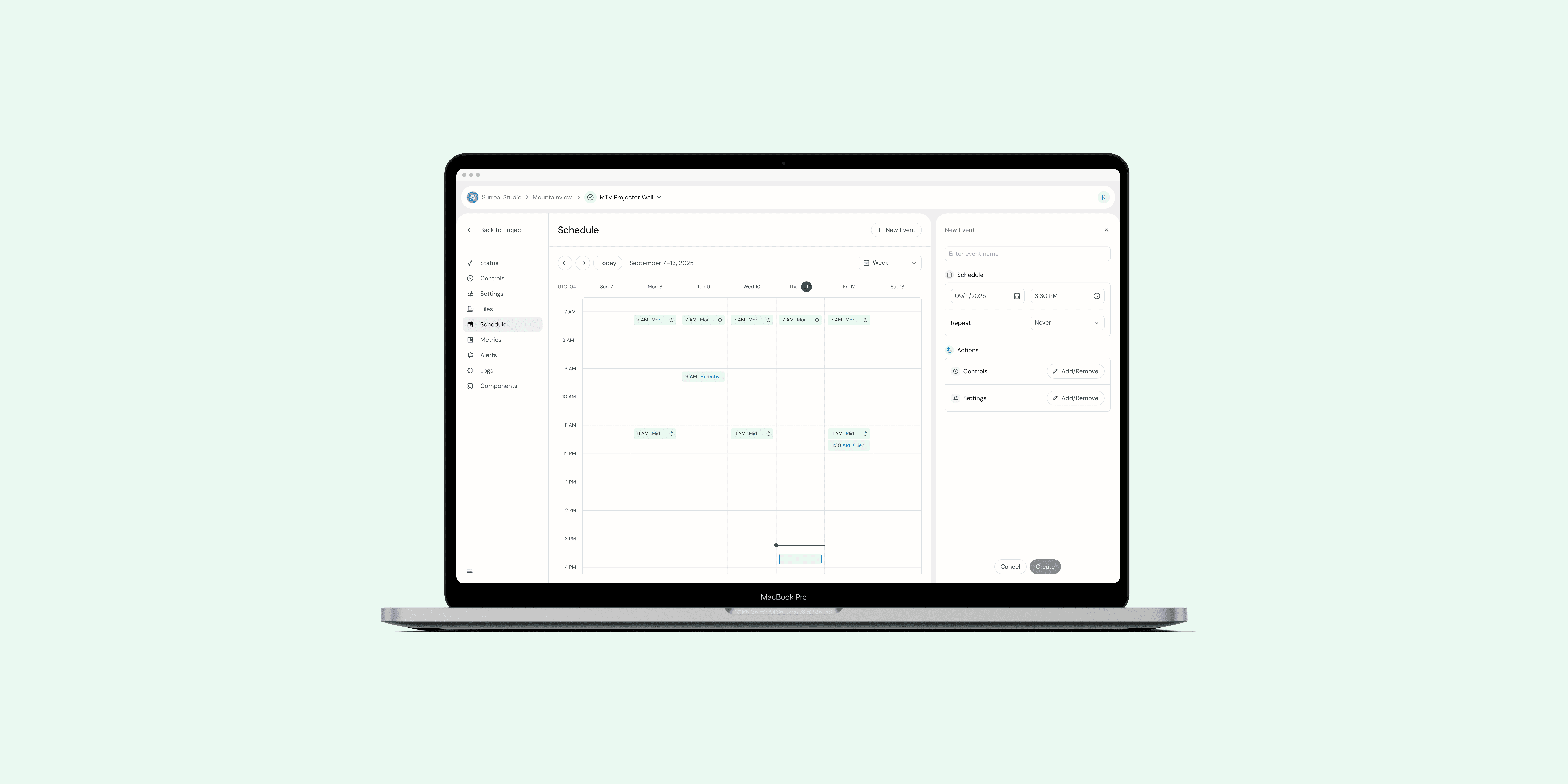 Gumband was undergoing a complete redesign of the product. The next feature that was due was our Scheduler feature where users could create reoccurring and one-time scheduled events to control the tech-integrated Exhibit. We had a very short timeline to design and develop as a client was due to be onboarded to the project in a month. To speed up the process, the redesign was split into two parts: Calendar and Event Creation. I tackled the Calendar portion while my teammate, Yuyuan Jin, designed the Event Creation process.